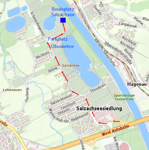 Unser zentraler Spielort ist beim Salzach-Badesee. Dort haben wir 3 Plätze hinter dem Kinderspielplatz. Leider gibt es dazu nur eine ungefähre Adresse: Schmiedingerstraße 180, 5020 Sbg, daher zusätzlich die Koordinaten fürs Navi: 47°50'16,7" N, 13°01'08,1" E